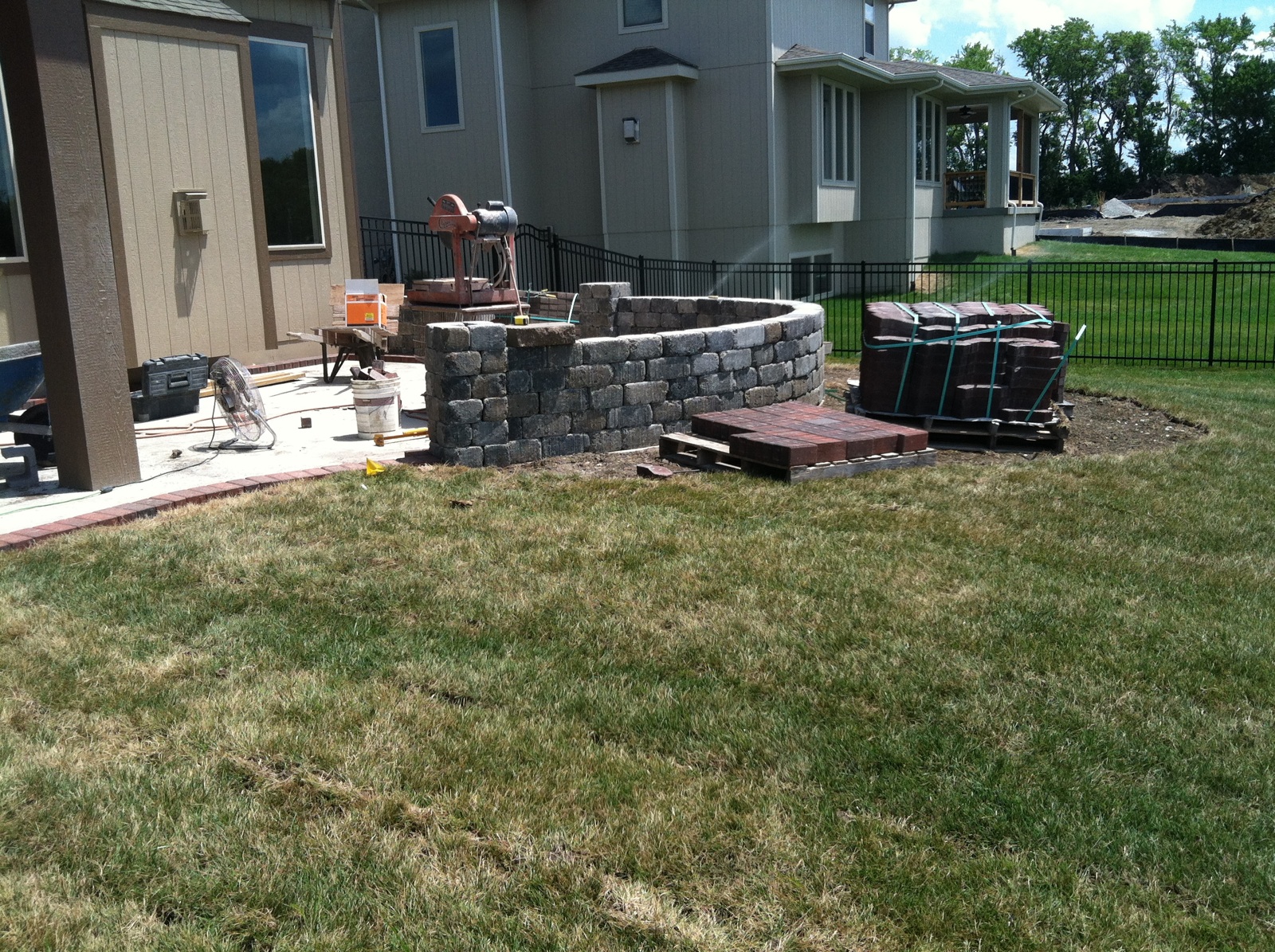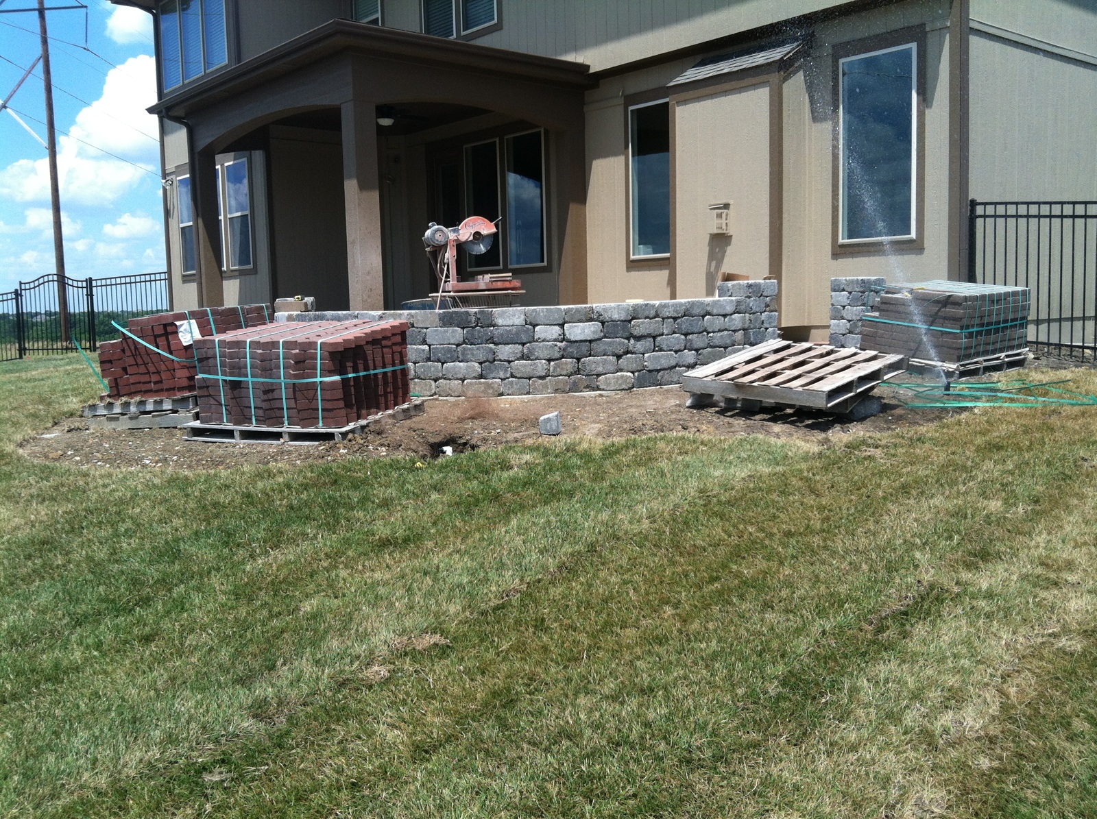 For this project, we were building a retaining wall as a divider between the patio and the lawn to give the outdoor living area more defined space. Starting from scratch, the patio are was first graded and the ground put in place. Alongside the patio and retaining wall construction, the lawn was prepared.